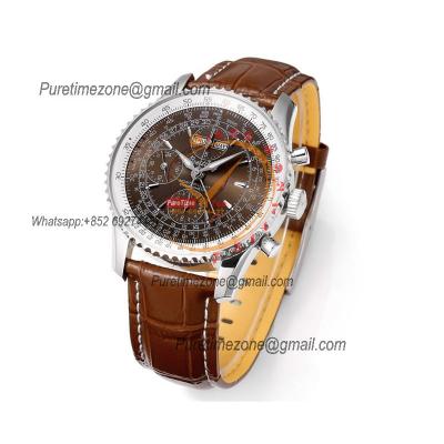 A24322121 Navitimer 1 World GMT A7750 Automatic Chronograph Mens Watch White Dial Brown Leather Strap Best Edition