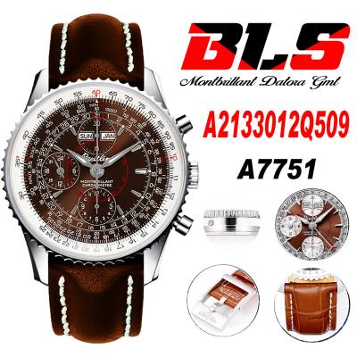 A24322121 Navitimer 1 World GMT A7750 Automatic Chronograph Mens Watch Blue Dial Leather Strap Best Edition