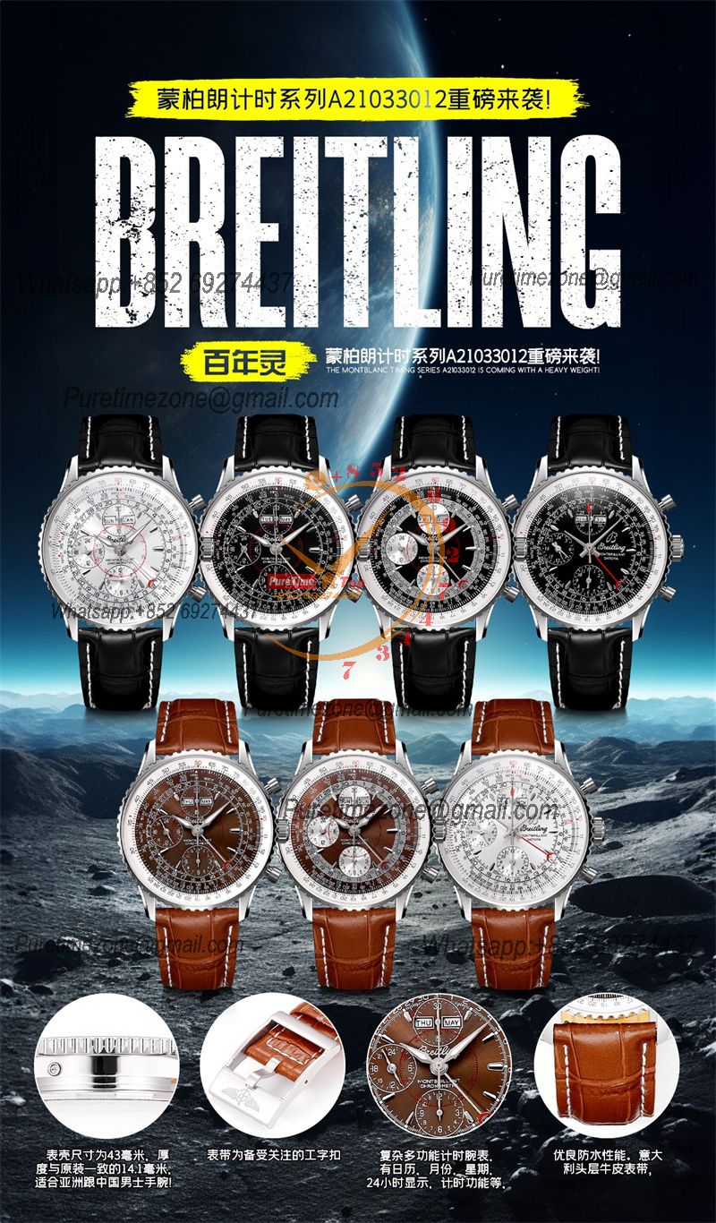 A24322121 Navitimer 1 World GMT A7750 Automatic Chronograph Mens WatchBlack Dial Leather Strap Best Edition