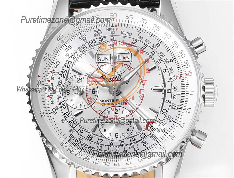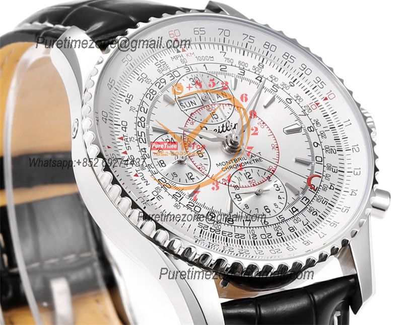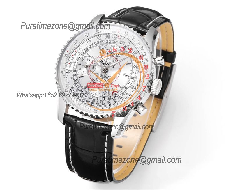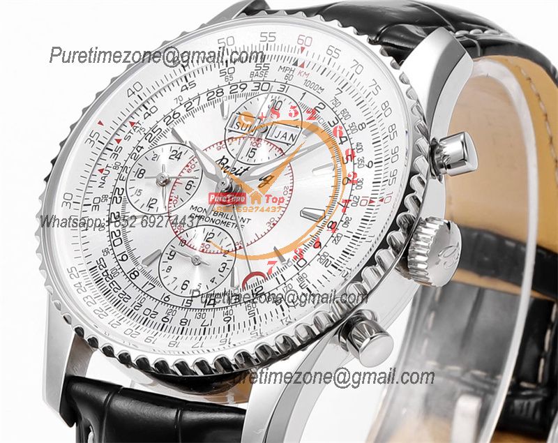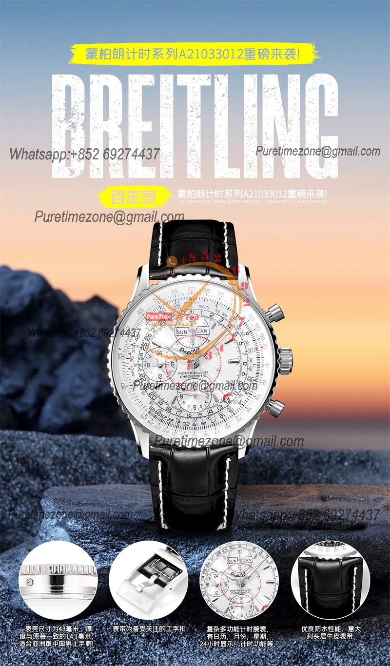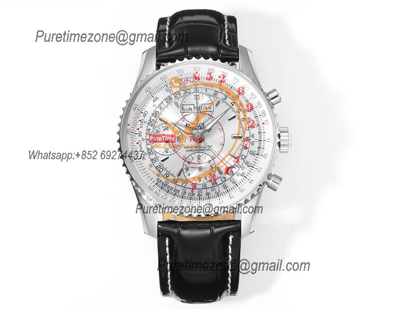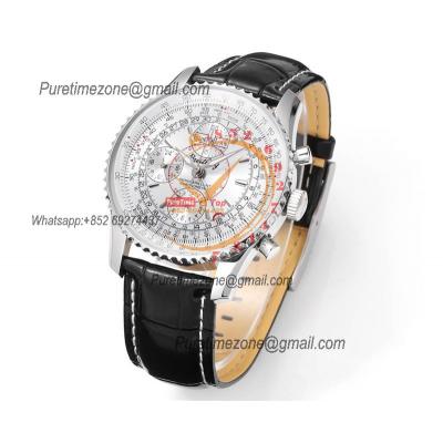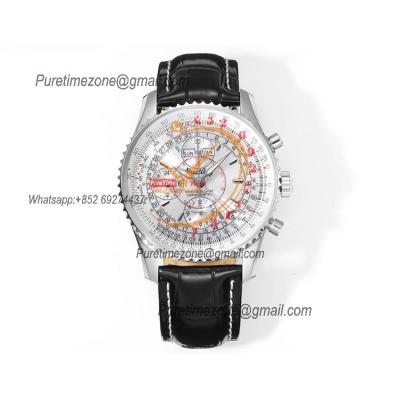 A24322121 Navitimer 1 World GMT A7750 Automatic Chronograph Mens Watch White Dial Black Leather Strap Best Edition