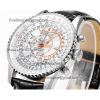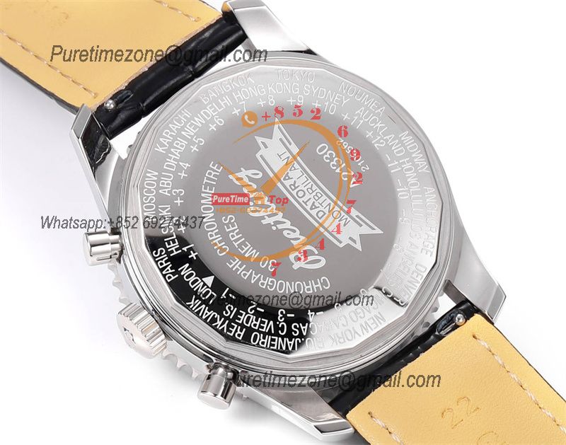 A24322121 Navitimer 1 World GMT A7750 Automatic Chronograph Mens Watch Black Dial Leather Strap Best Edition