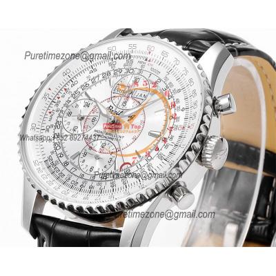 A24322121 Navitimer 1 World GMT A7750 Automatic Chronograph Mens WatchWhite Dial Black Leather Strap Best Edition