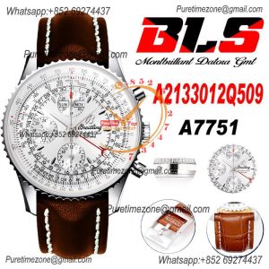 A24322121 Navitimer 1 World GMT A7750 Automatic Chronograph Mens Watch White Dial Brown Leather Strap Best Edition