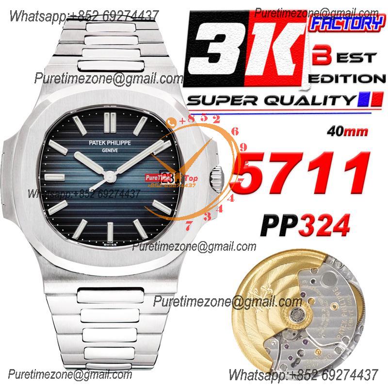 Nautilus 5711 40mm A324 Atuomatic Mens Watch Best Edition 3KF V2 Blue Textured Dial SS Bracelet CHS