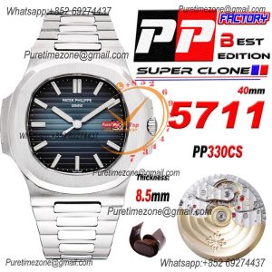 Nautilus 5711 40th Anniversary A330 Atuomatic Mens Watch Best Edition PPF V5 Blue Textured Dial SS Bracelet CHS