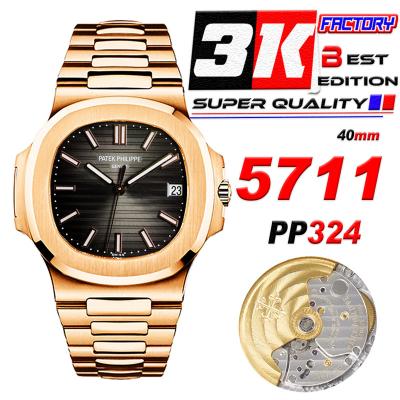 Nautilus 5711 40mm A324 Atuomatic Mens Watch Best Edition 3KF V2 RG Gray Textured Dial SS Bracelet CHS