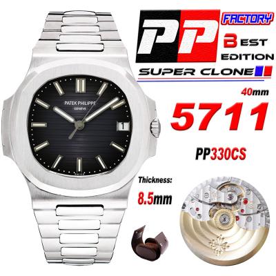 Nautilus 5711 40mm A330 Atuomatic Mens Watch Best Edition PPF V5 Gray Textured Dial SS Bracelet CHS