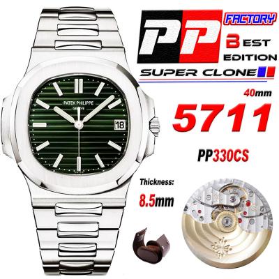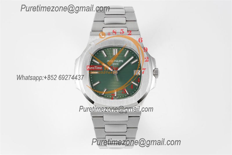 Nautilus 5711 40mm A330 Atuomatic Mens Watch Best Edition PPF V5 Green Textured Dial SS Bracelet CHS