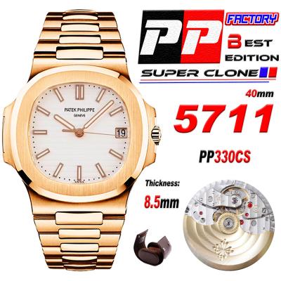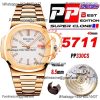 Nautilus 5711 40mm A330 Atuomatic Mens Watch Best Edition PPF V5 RG White Textured Dial SS Bracelet CHS