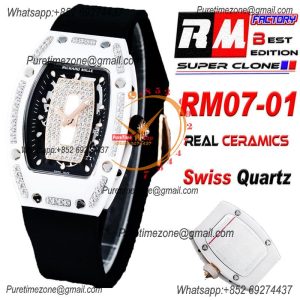 RM07-01 Swiss Quartz Womens Watch RMF White Ceramic Diamond Bezel Dial Black Rubber Ladies $330.00 $220.00