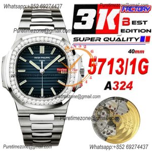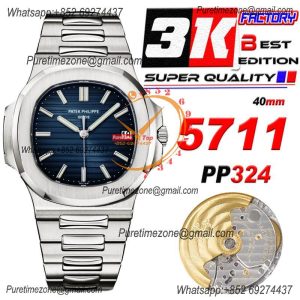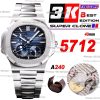 Nautilus 5712 40mm A240 Atuomatic Mens Watch Best Edition F3KF D-Blue Textured Dial SS Bracelet CHS