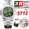 Nautilus 5712 40mm A240 Atuomatic Mens Watch Best Edition F3KF Green Textured Dial SS Bracelet CHS