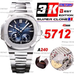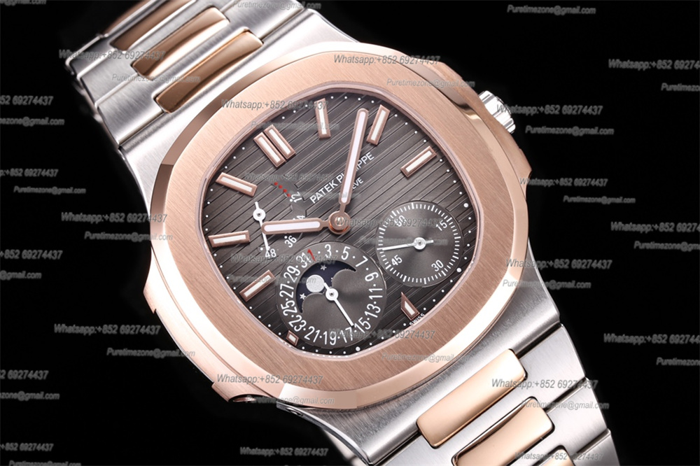 Nautilus 5712 40mm A240 Atuomatic Mens Watch Best Edition F3KF Two Tone RG Gray Textured Dial SS Bracelet CHS