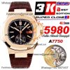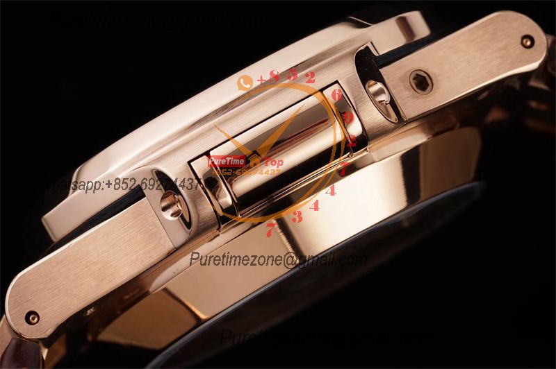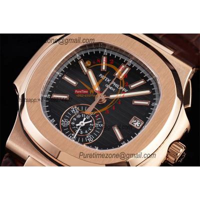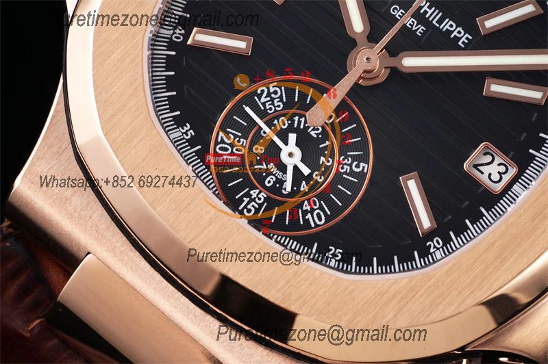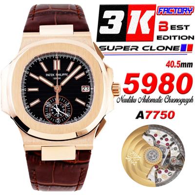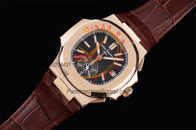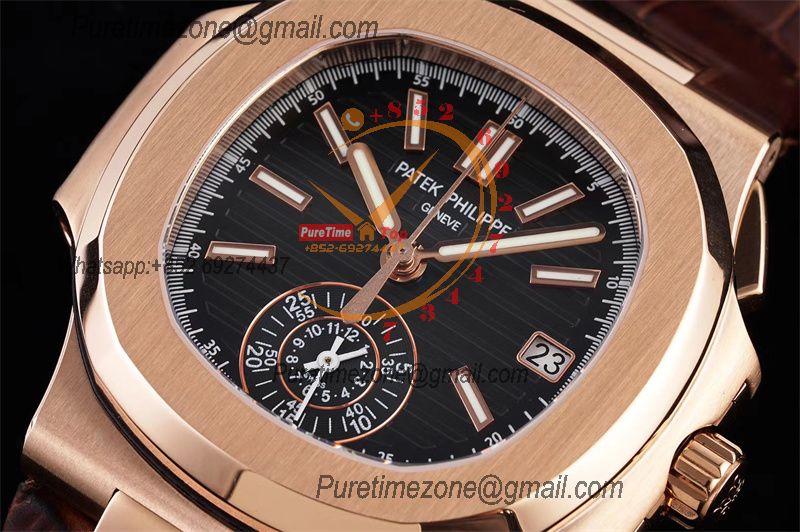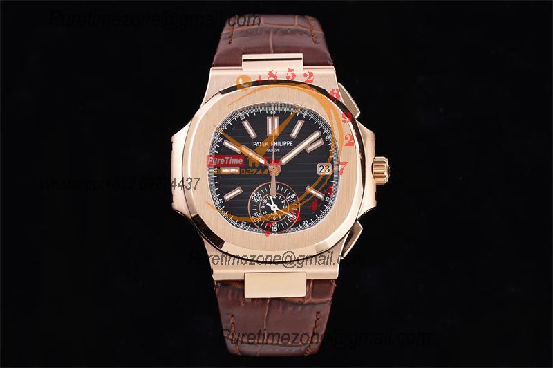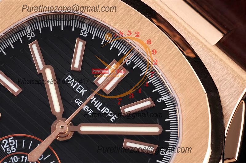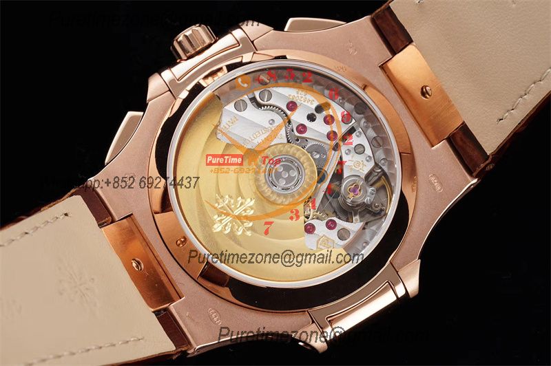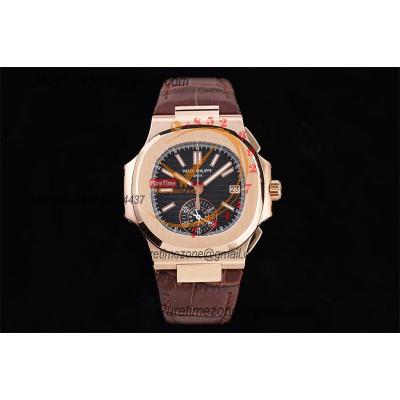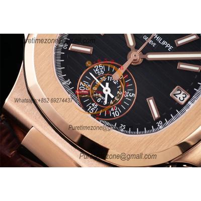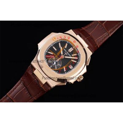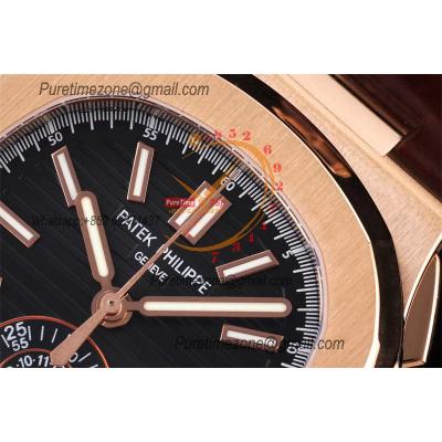 Nautilus 5980 40.5mm A28-520 Atuomatic Chronograph Mens Watch Best Edition 3KF RG Black Textured Dial Leather CHS