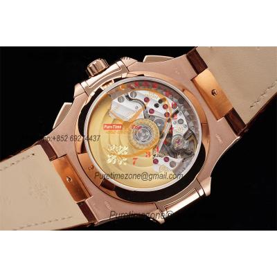 Nautilus 5980 40.5mm A28-520 Atuomatic Chronograph Mens Watch Best Edition 3KF RG Blue Textured Dial Leather CHS