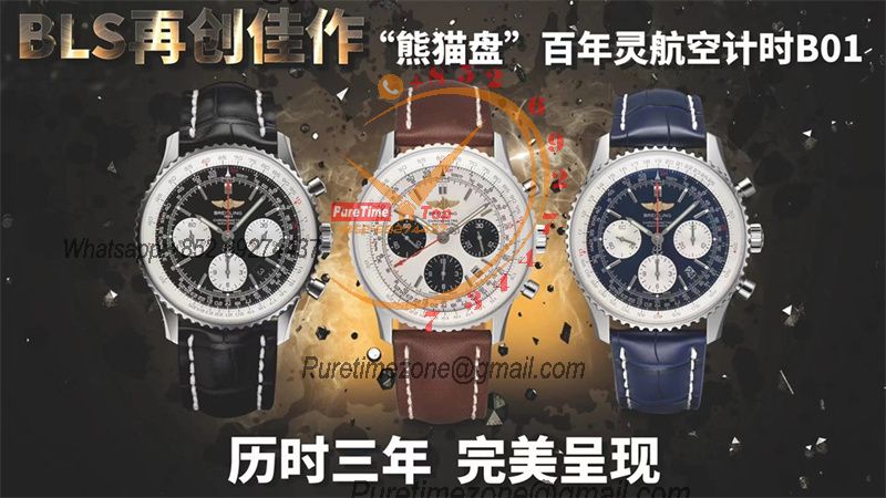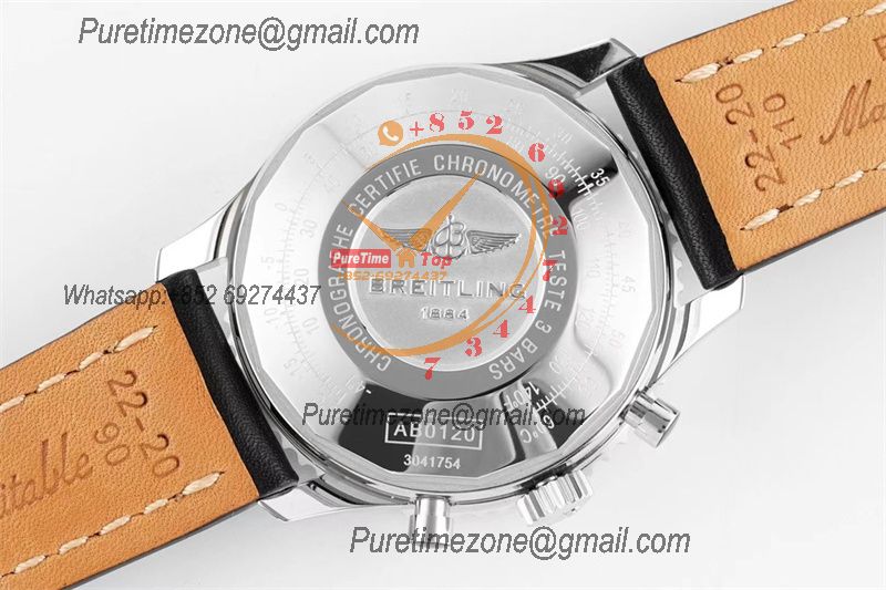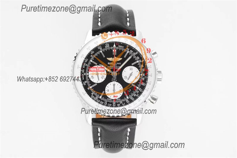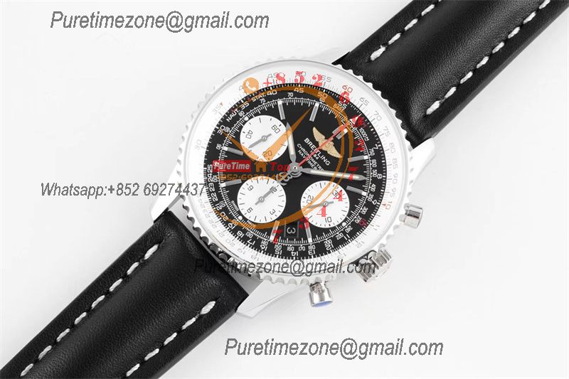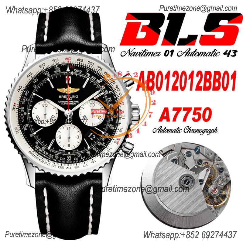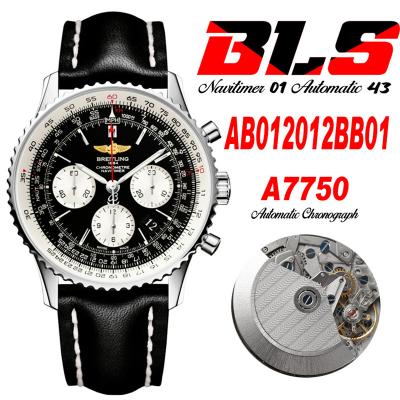 Navitimer 1 AB012012 A7750 Automatic Chronograph Mens Watch SS Best Edition BLSF Black Dial Black Leather Strap