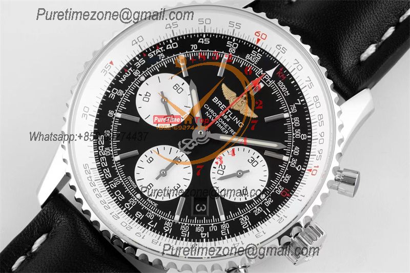 A24322121 Navitimer 1 World GMT A7750 Automatic Chronograph Mens WatchWhite Dial Black Leather Strap Best Edition