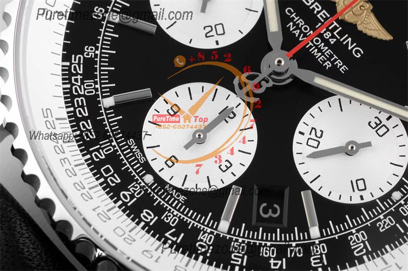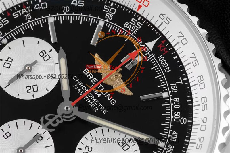 A24322121 Navitimer 1 World GMT A7750 Automatic Chronograph Mens WatchBlack Dial Leather Strap Best Edition