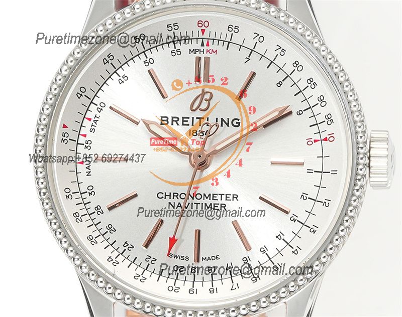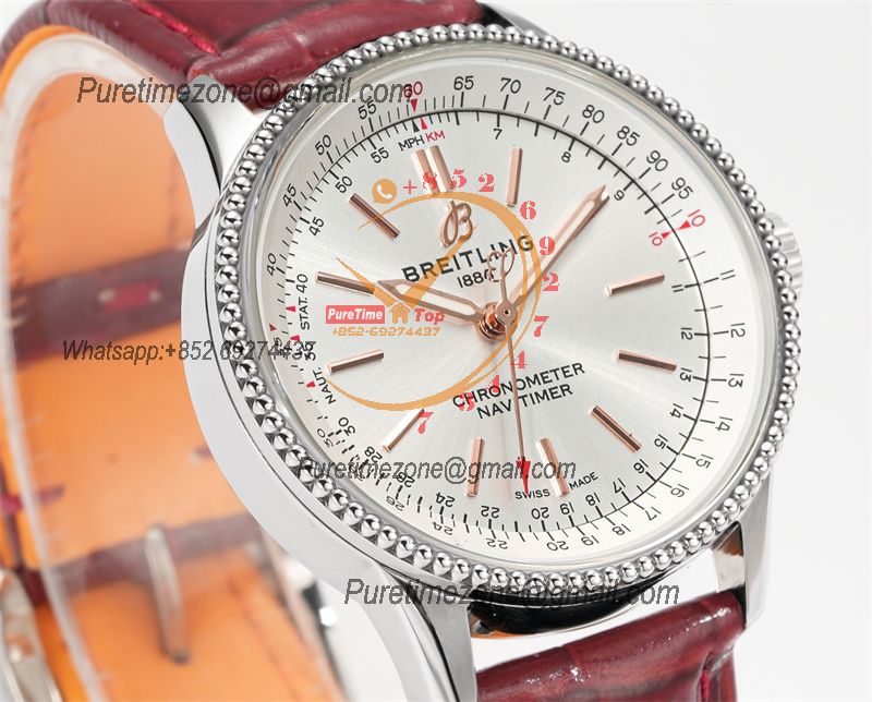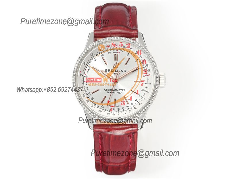 Home Breitling Navitimer Navitimer 35mm A17327211G1P1 A2824 Automatic Womens Watch Best Edition BLSF 42 SS Silver Dial Red Leather