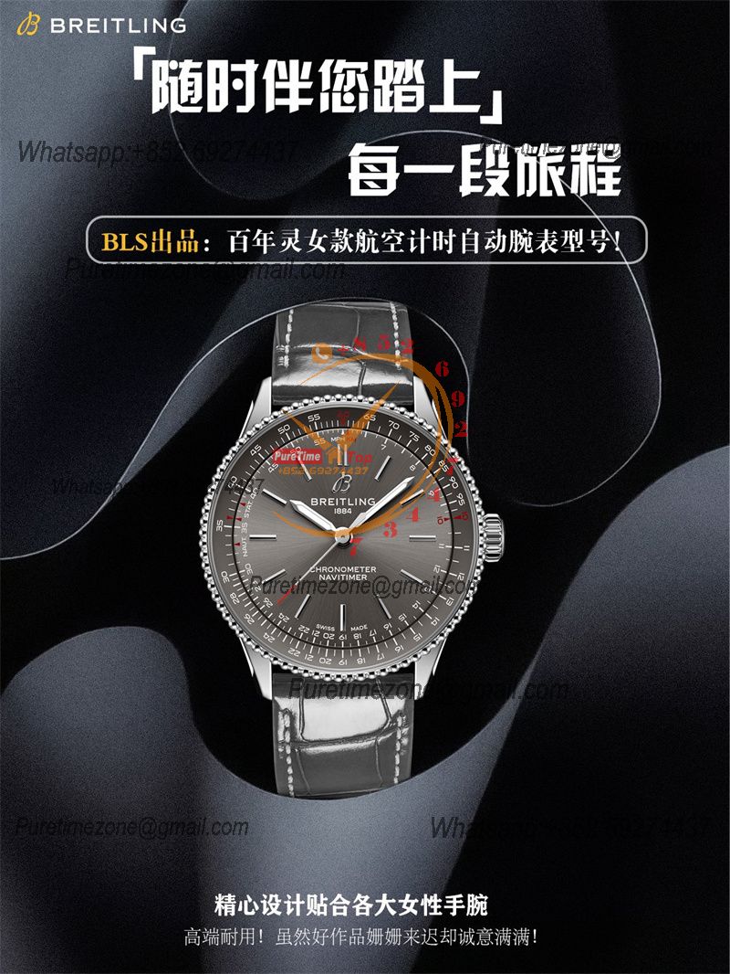 Navitimer 35mm A17327381B1P1 A2824 Automatic Womens Watch Best Edition BLSF 42 SS Gray Dial Leather Strap