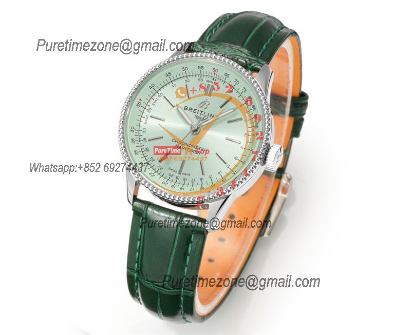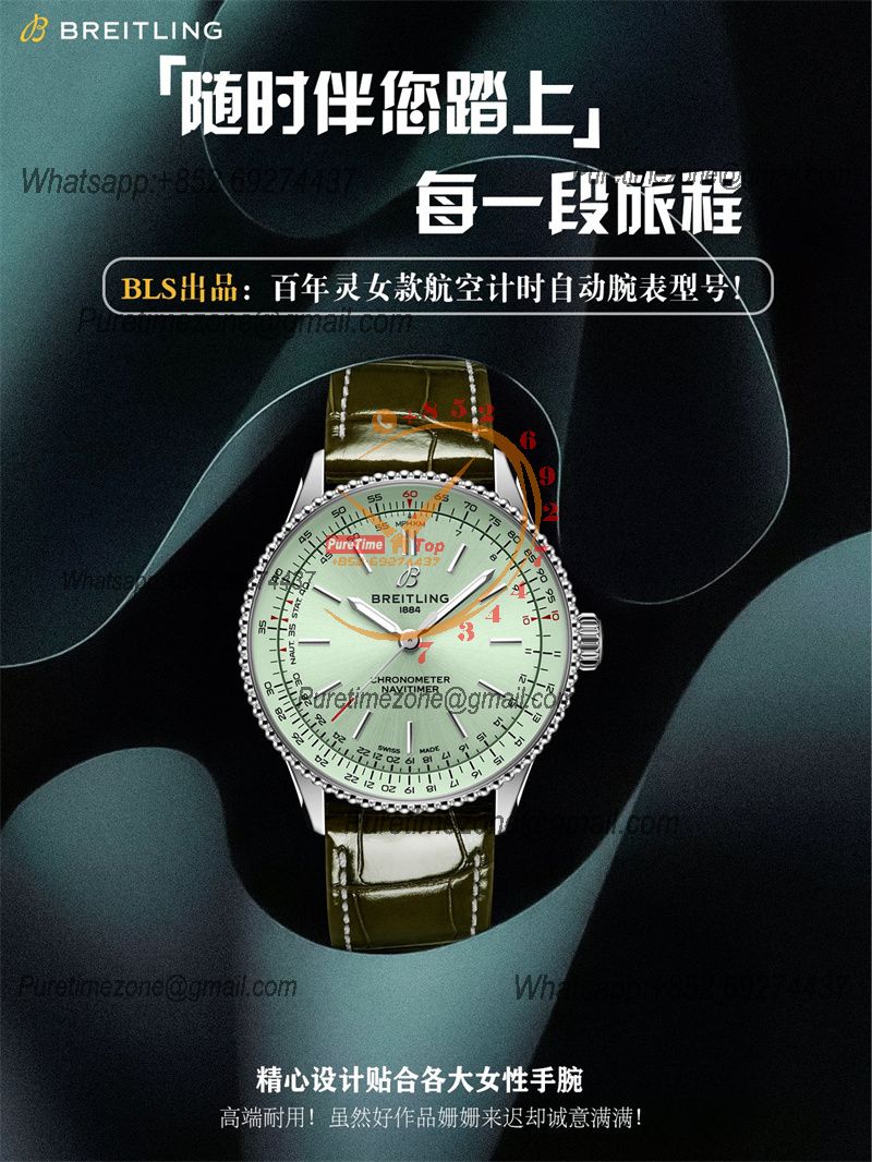 Navitimer 35mm A17395361L1P1 A2824 Automatic Womens Watch Best Edition BLSF 42 SS Green Dial Leather Strap