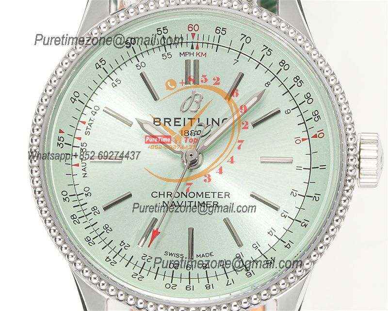 Home Breitling Navitimer Navitimer 35mm A17395361L1P1 A2824 Automatic Womens Watch Best Edition BLSF 42 SS Green Dial Leather Strap