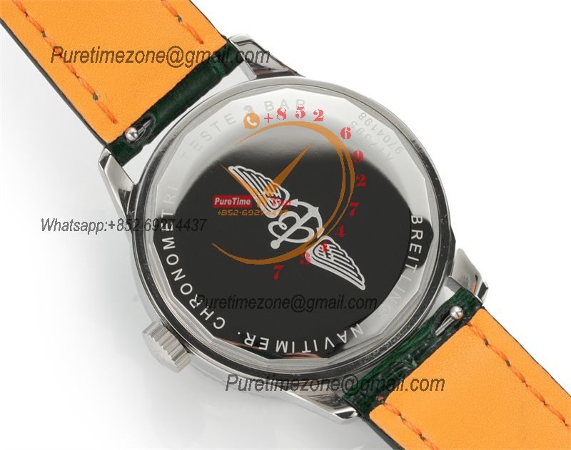 Navitimer B01 AB0138241 A7750 Automatic Chronograph Mens Watch Best Edition BLSF Green Dial Black Leather Strap