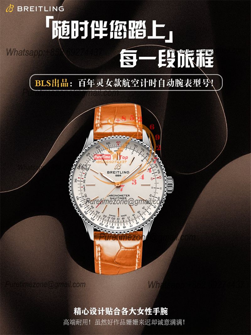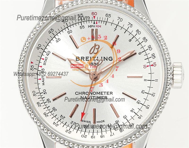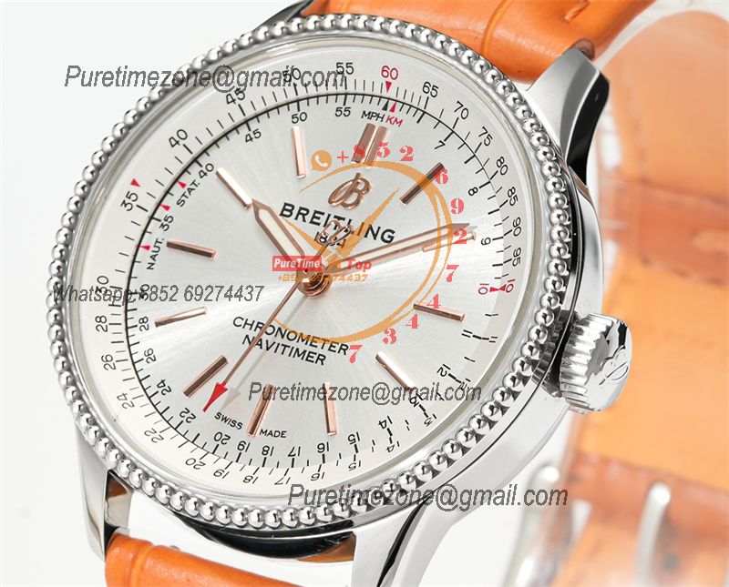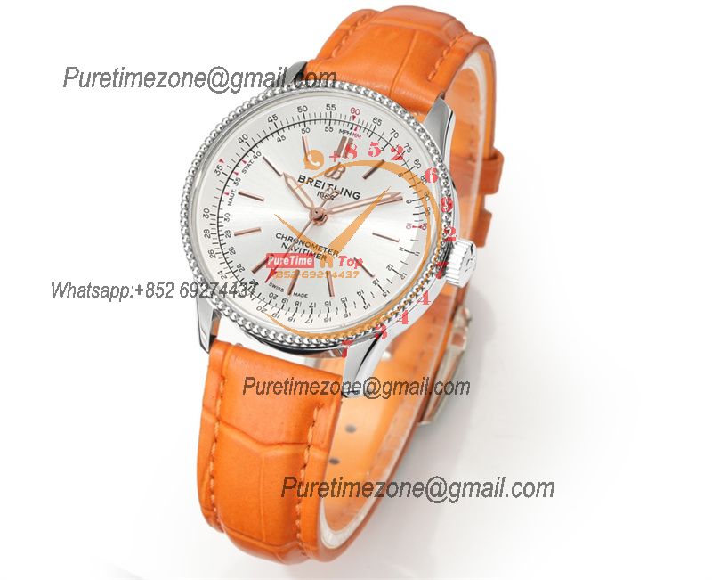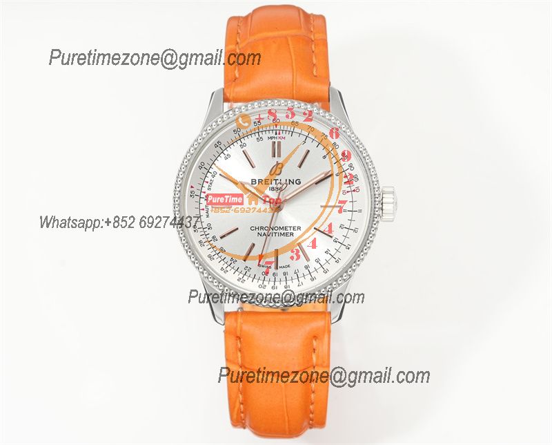 Home Breitling Navitimer Navitimer 35mm A17395F41G1P4 A2824 Automatic Womens Watch Best Edition BLSF 42 SS Silver Dial Orange Leather