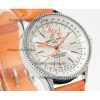 A24322121 Navitimer 1 World GMT A7750 Automatic Chronograph Mens Watch White Dial Brown Leather Strap Best Edition