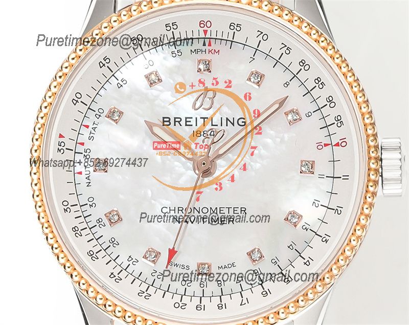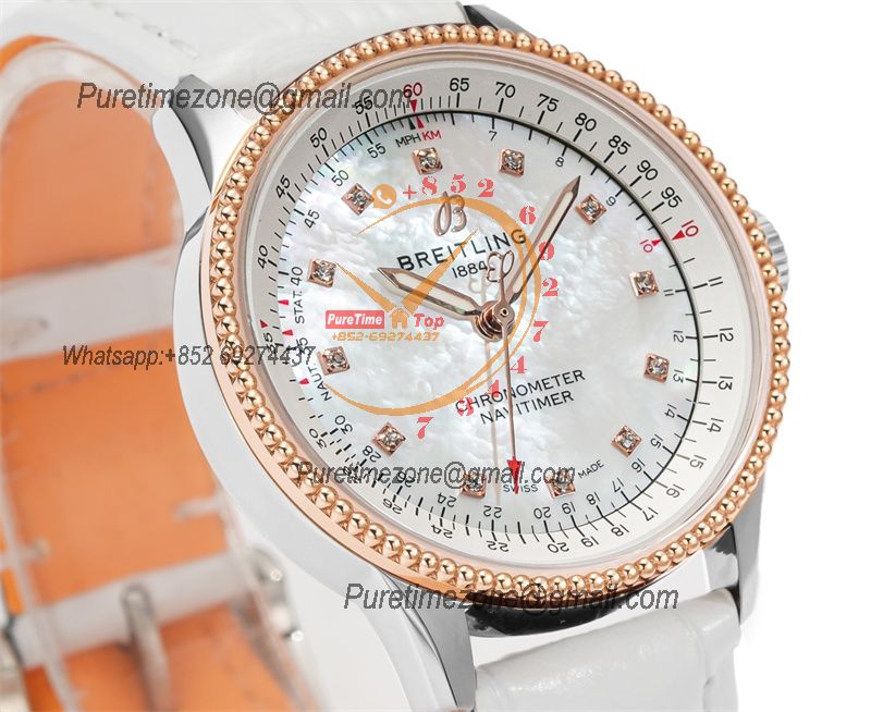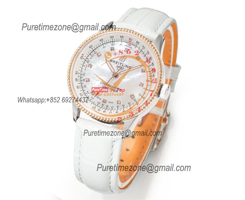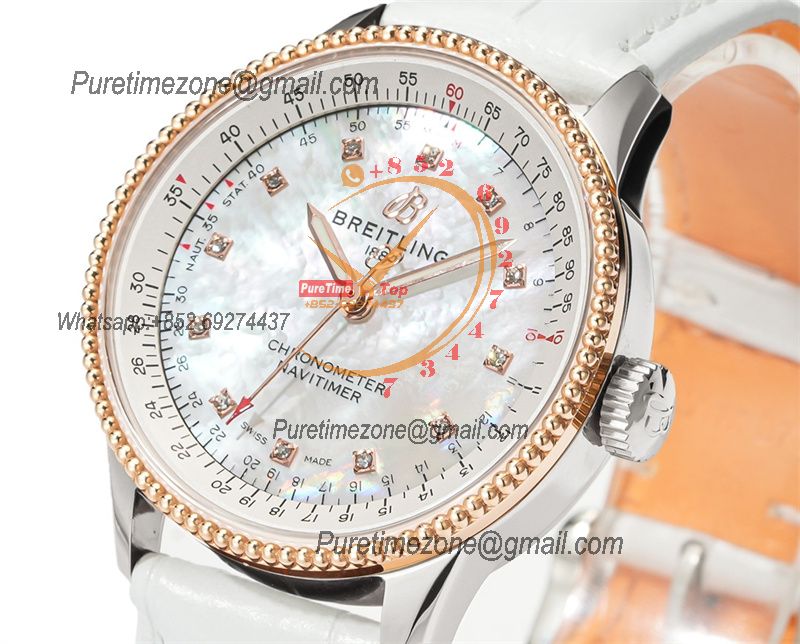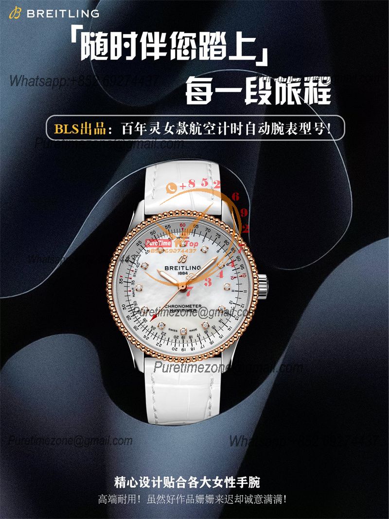 Navitimer 35mm U17395211A1P4 A2824 Automatic Womens Watch Best Edition BLSF 42 RG MOP Dial White Leather