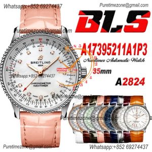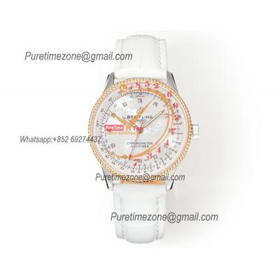 Navitimer 35mm U17395211A1P4 A2824 Automatic Womens Watch Best Edition BLSF 42 RG MOP Dial White Leather
