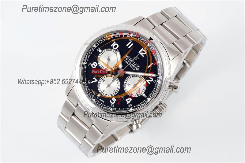 A24322121 Navitimer 1 World GMT A7750 Automatic Chronograph Mens Watch Black Dial SS Bracelet Best Edition