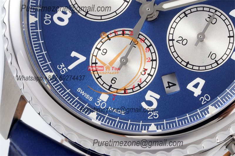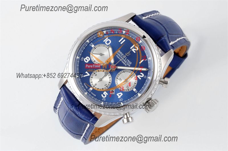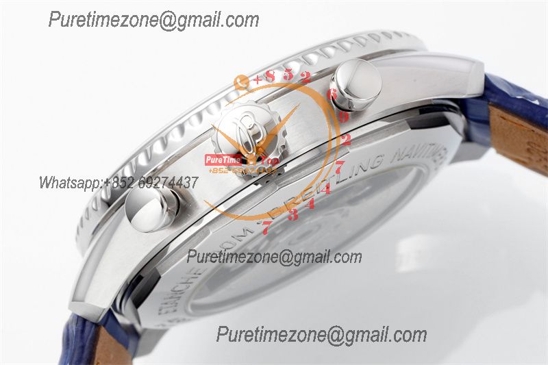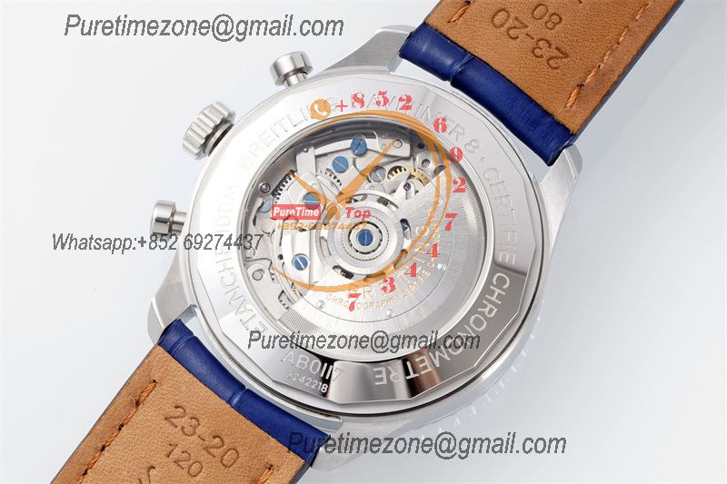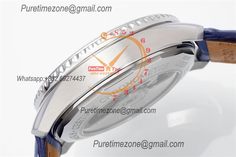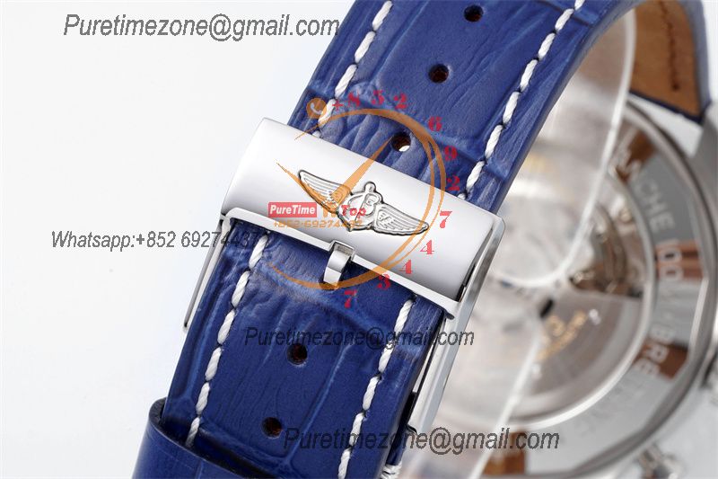 A24322121 Navitimer 1 World GMT A7750 Automatic Chronograph Mens WatchBlue Dial Blue Leather Strap Best Edition