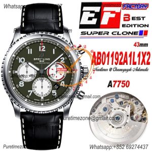 Navitimer B01 AB0139211 A7750 Automatic Chronograph Mens Watch Best Edition BLSF Green Dial Brown Leather Strap
