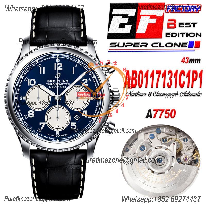 Navitimer 8 AB0117131C1P1 A7750 Automatic Chronograph Mens Watch Best Edition GF 43mm Blue Dial Leather CHS