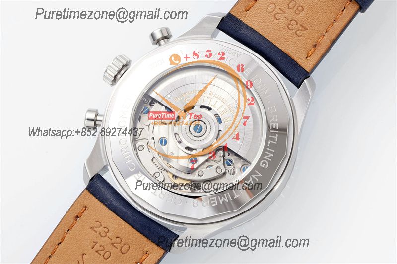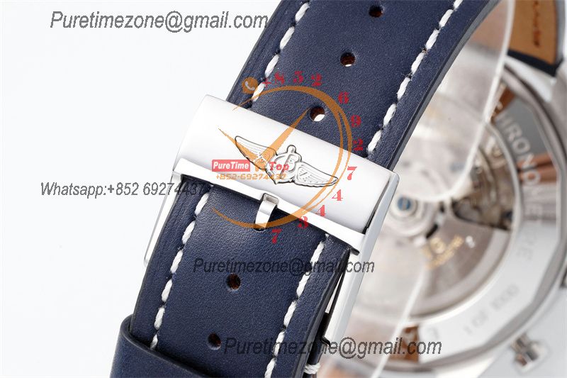 A24322121 Navitimer 1 World GMT A7750 Automatic Chronograph Mens WatchBlue Dial Blue Leather Strap Best Edition