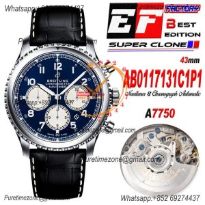 Navitimer B01 AB0139241 A7750 Automatic Chronograph Mens Watch Best Edition BLSF Blue Dial Black Leather Strap