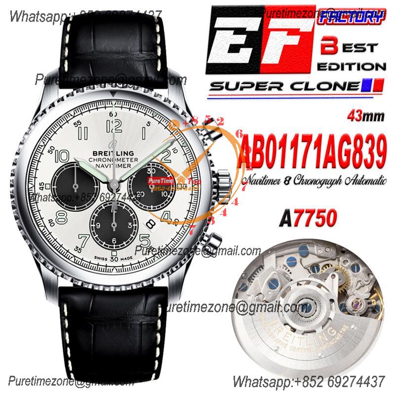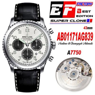 Navitimer 8 AB01171AG839 A7750 Automatic Chronograph Mens Watch Best Edition GF 43mm Silver Dial Leather CHS