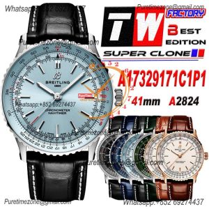 Navitimer A2824 Automatic Mens Watch A17329171C1P1 Best Edition TWF 41mm ICE Blue Dial Leather Strap CHS $615.00 $410.00