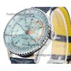 A24322121 Navitimer 1 World GMT A7750 Automatic Chronograph Mens Watch Blue Dial Blue Leather Strap Best Edition