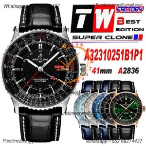 Navitimer A2836 Automatic GMT Mens Watch A32310251B1P1 Best Edition TWF 41mm Black Dial Leather StrapCHS $615.00 $410.00