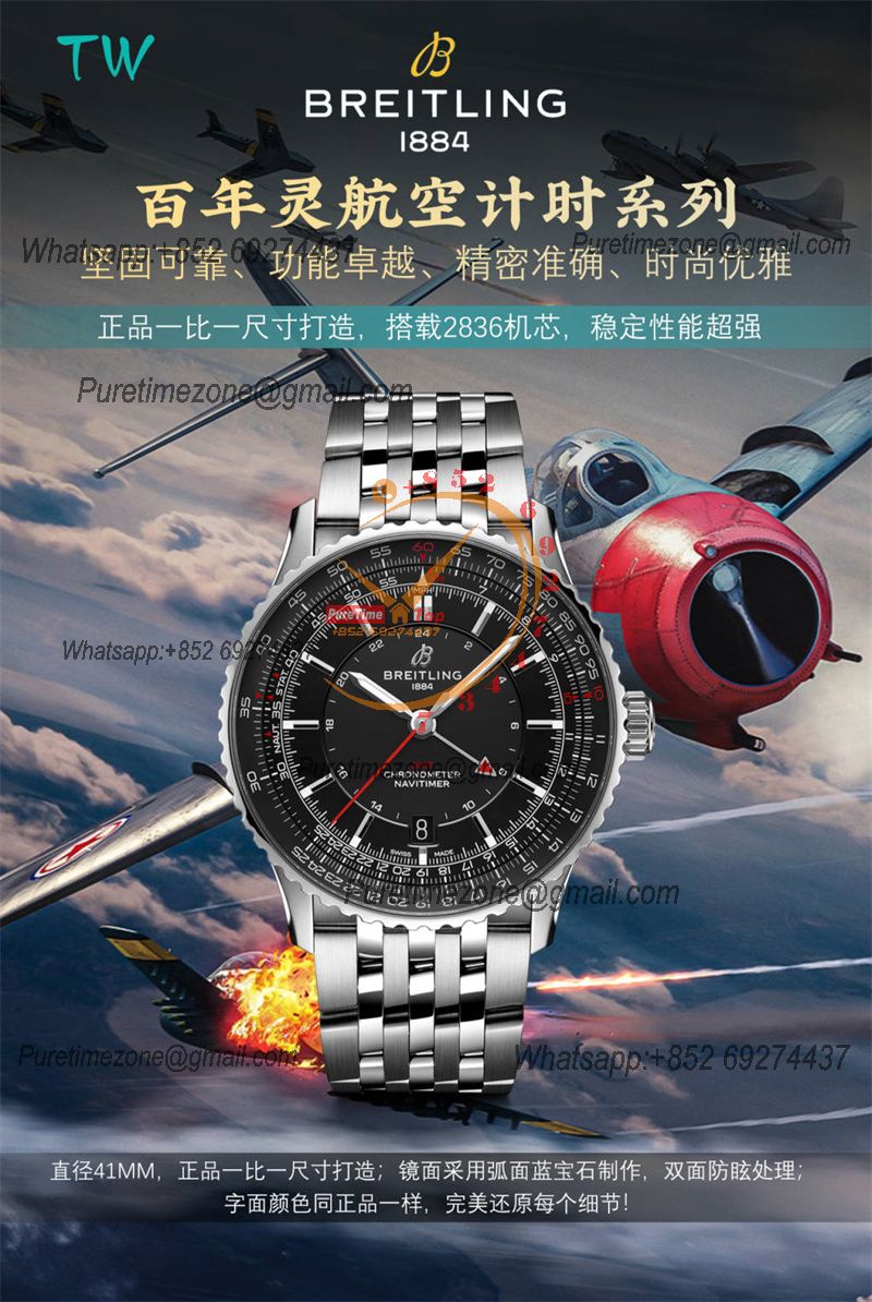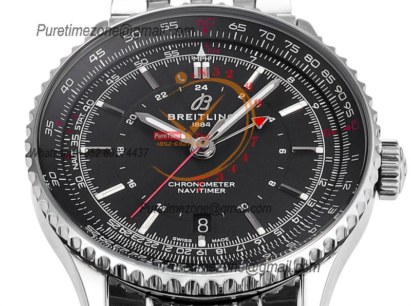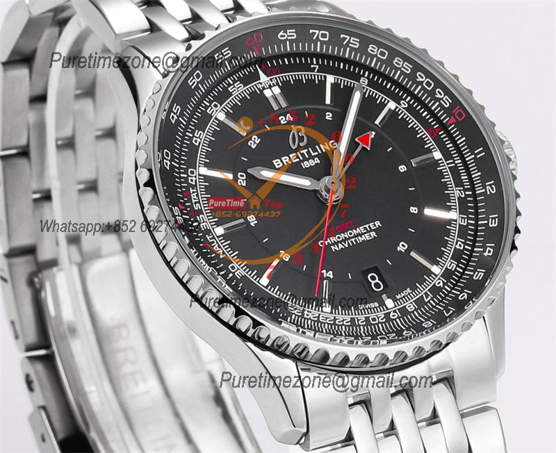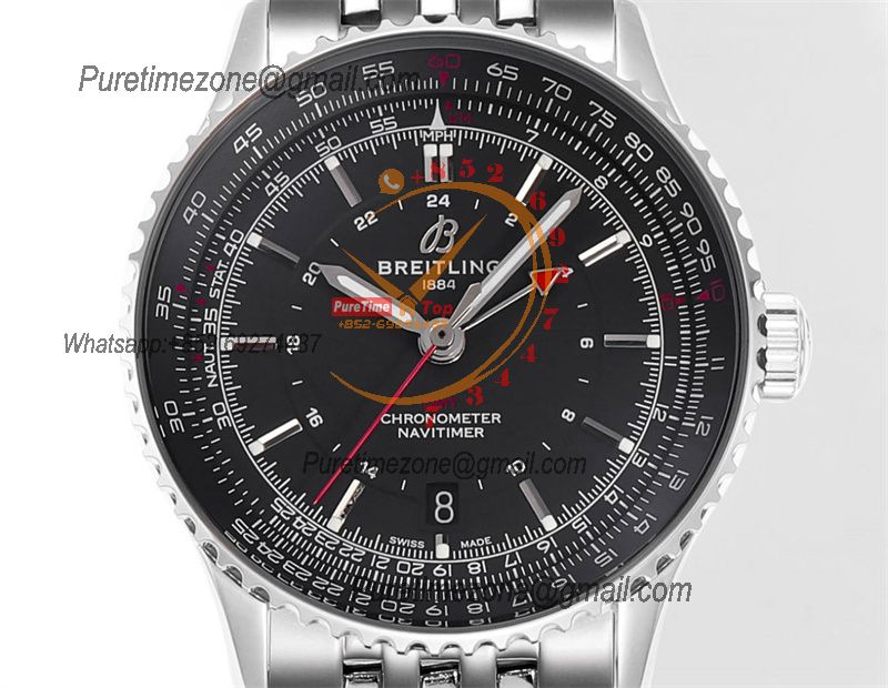 Navitimer A2836 Automatic GMT Mens Watch A32310251B1A1 Best Edition TWF 41mm Black Dial SS Bracele CHS