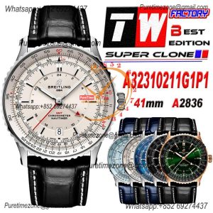 Navitimer A2836 Automatic GMT Mens Watch A32310211G1P1 Best Edition TWF 41mm Silver Dial Leather CHS $615.00 $410.00