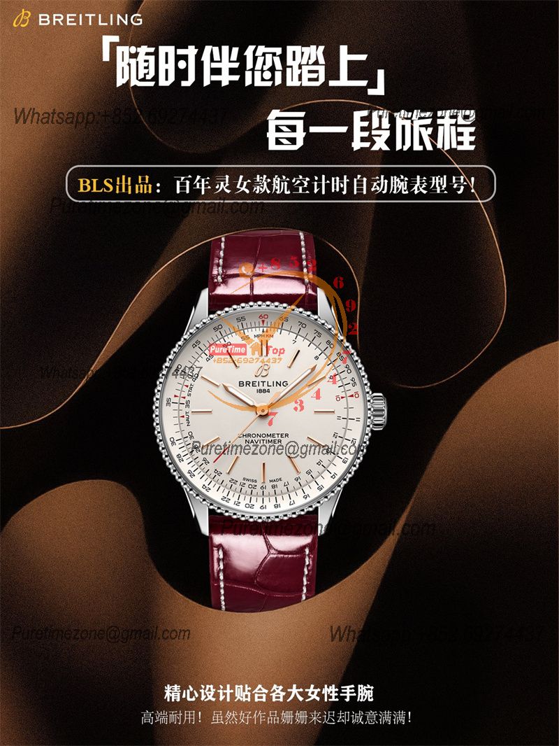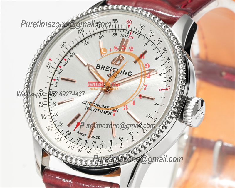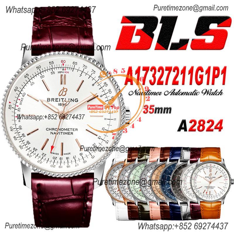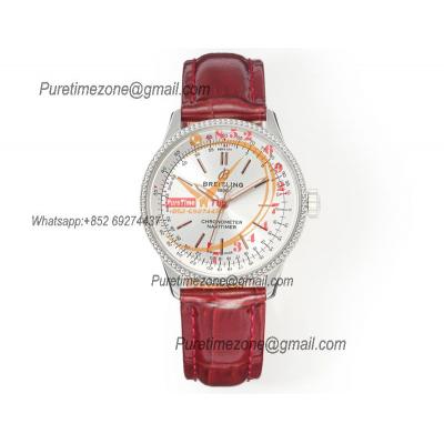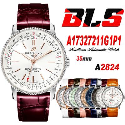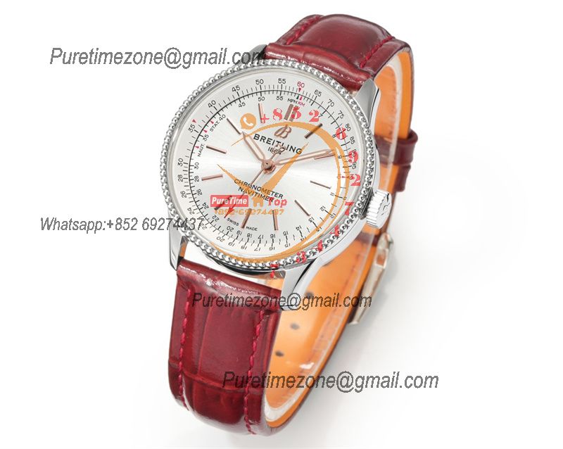 Navitimer Automatic 35 A2824 Automatic Womens Watch A17327211G1P1 Best Edition BLSF Silver Dial Red Leather Ladies