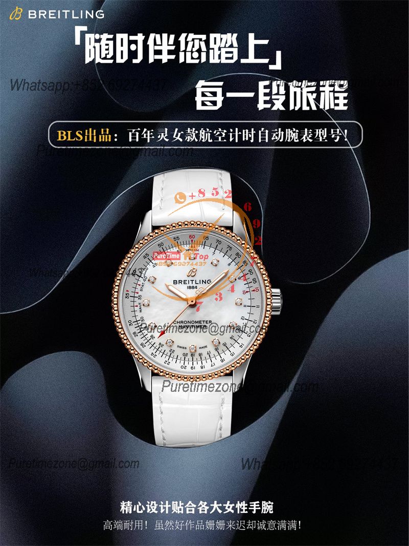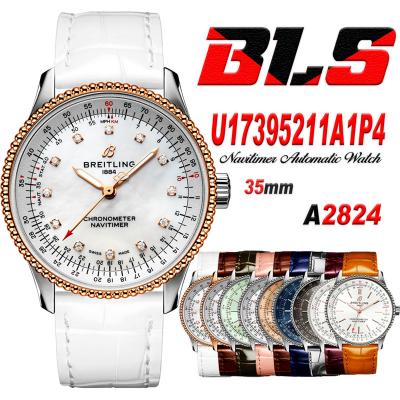 Navitimer Automatic 35 A2824 Automatic Womens Watch U17395211A1P4 Best Edition BLSF MOP Dial Whtie Leather Ladies
