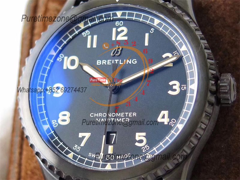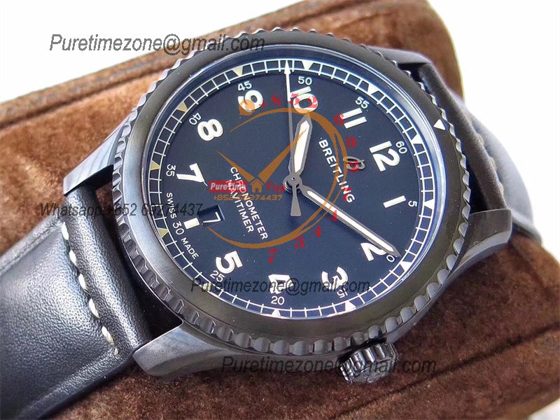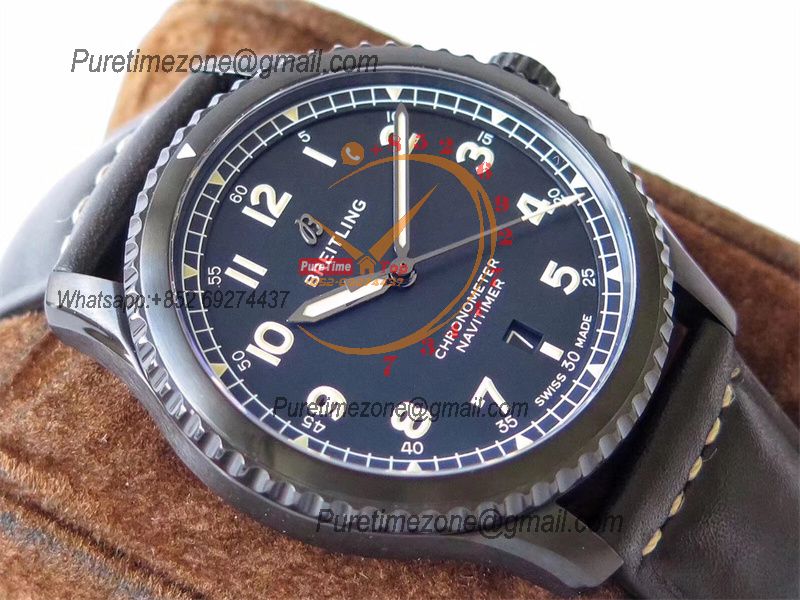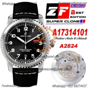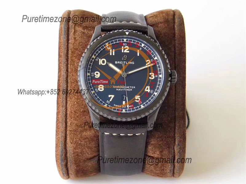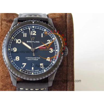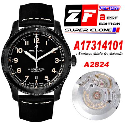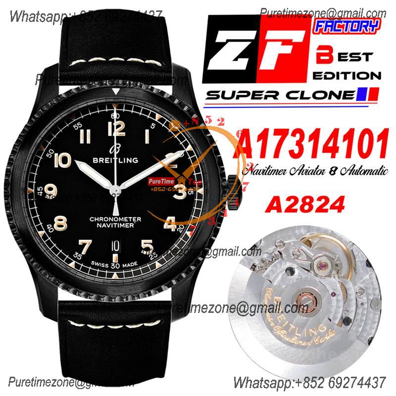 Navitimer Aviator 8 A17314101 A2824 Automatic Mens Watch Best Edition ZF PVD Steel All Black Dial Leather Strap