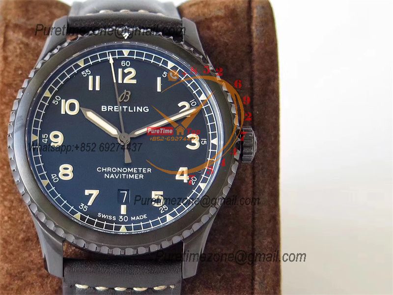 Home Breitling Navitimer Navitimer Aviator 8 A17314101 A2824 Automatic Mens Watch Best Edition ZF PVD Steel All Black Dial Leather Strap