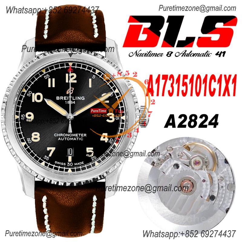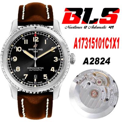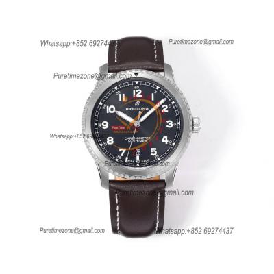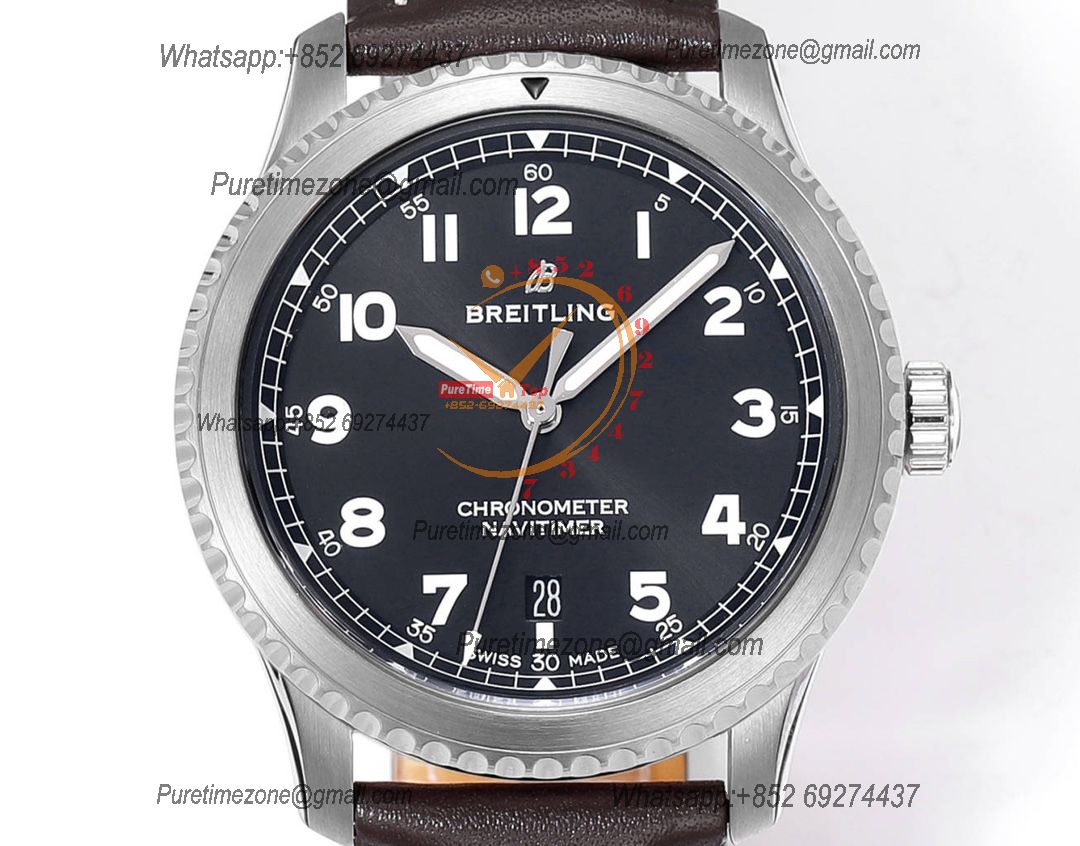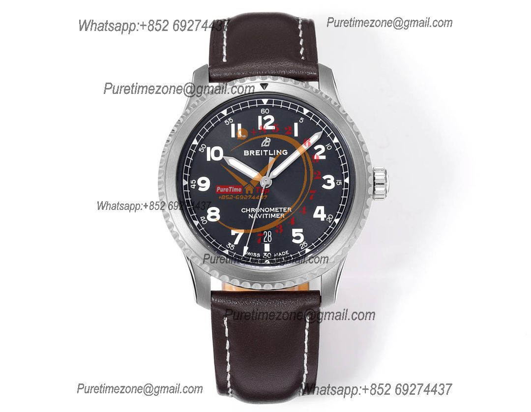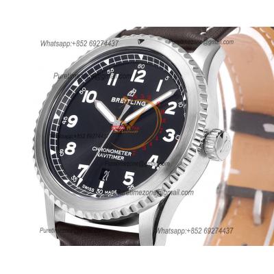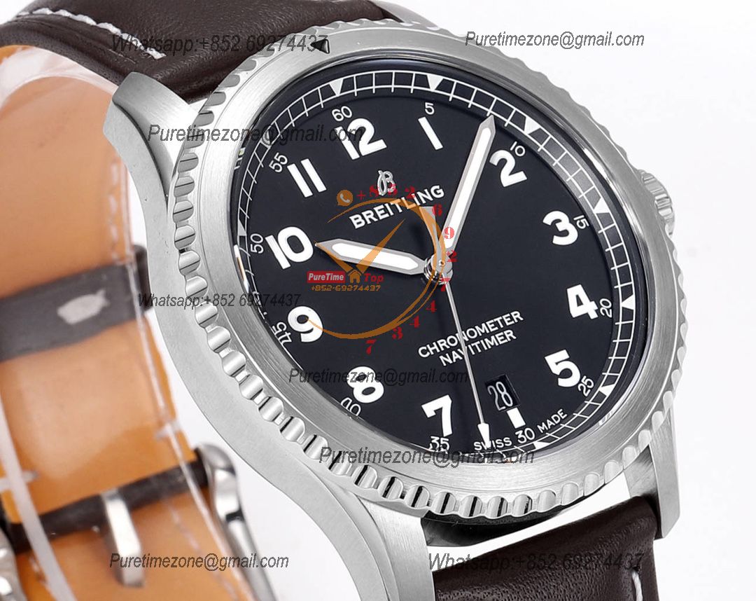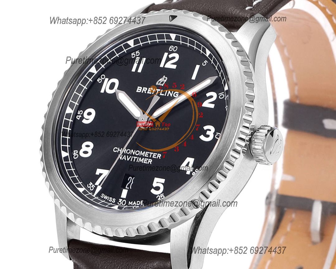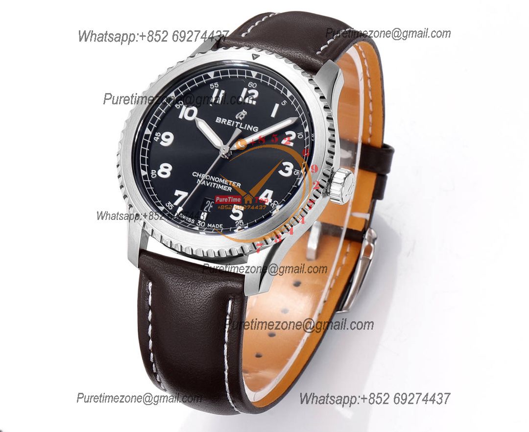 Navitimer Aviator 8 A173151 A2824 Automatic Mens Watch SS Best Edition BLSF Black Dial Brown Leather Strap