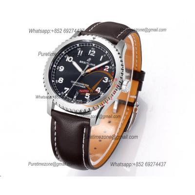 A24322121 Navitimer 1 World GMT A7750 Automatic Chronograph Mens WatchBlack Dial Leather Strap Best Edition