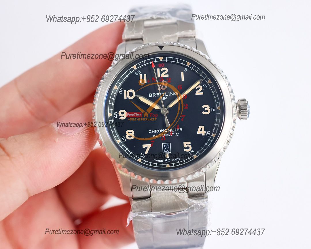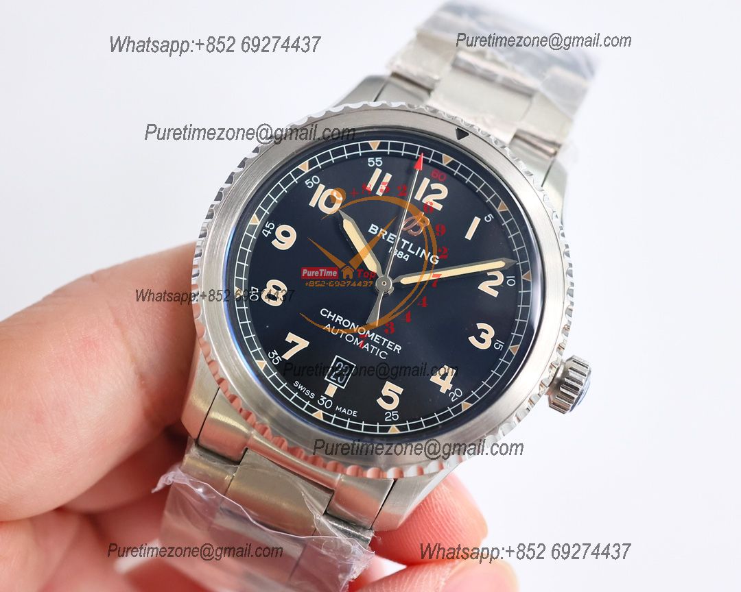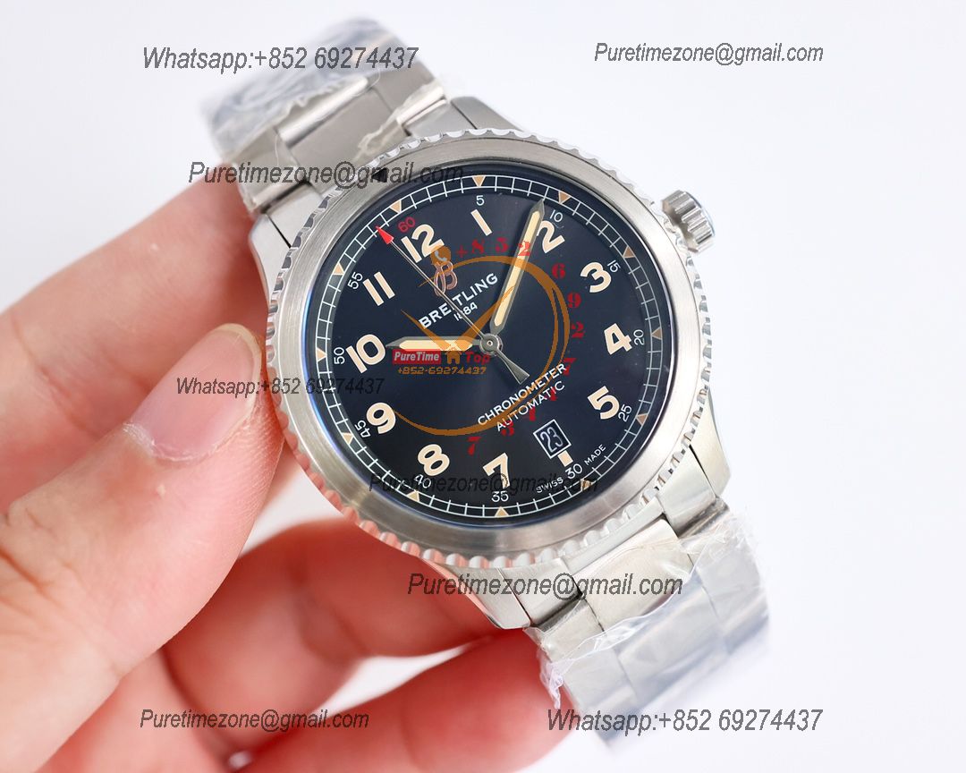 Navitimer Aviator 8 A17315101 A2824 Automatic Mens Watch Best Edition BLSF Black Dial Stainless Steel Bracelet